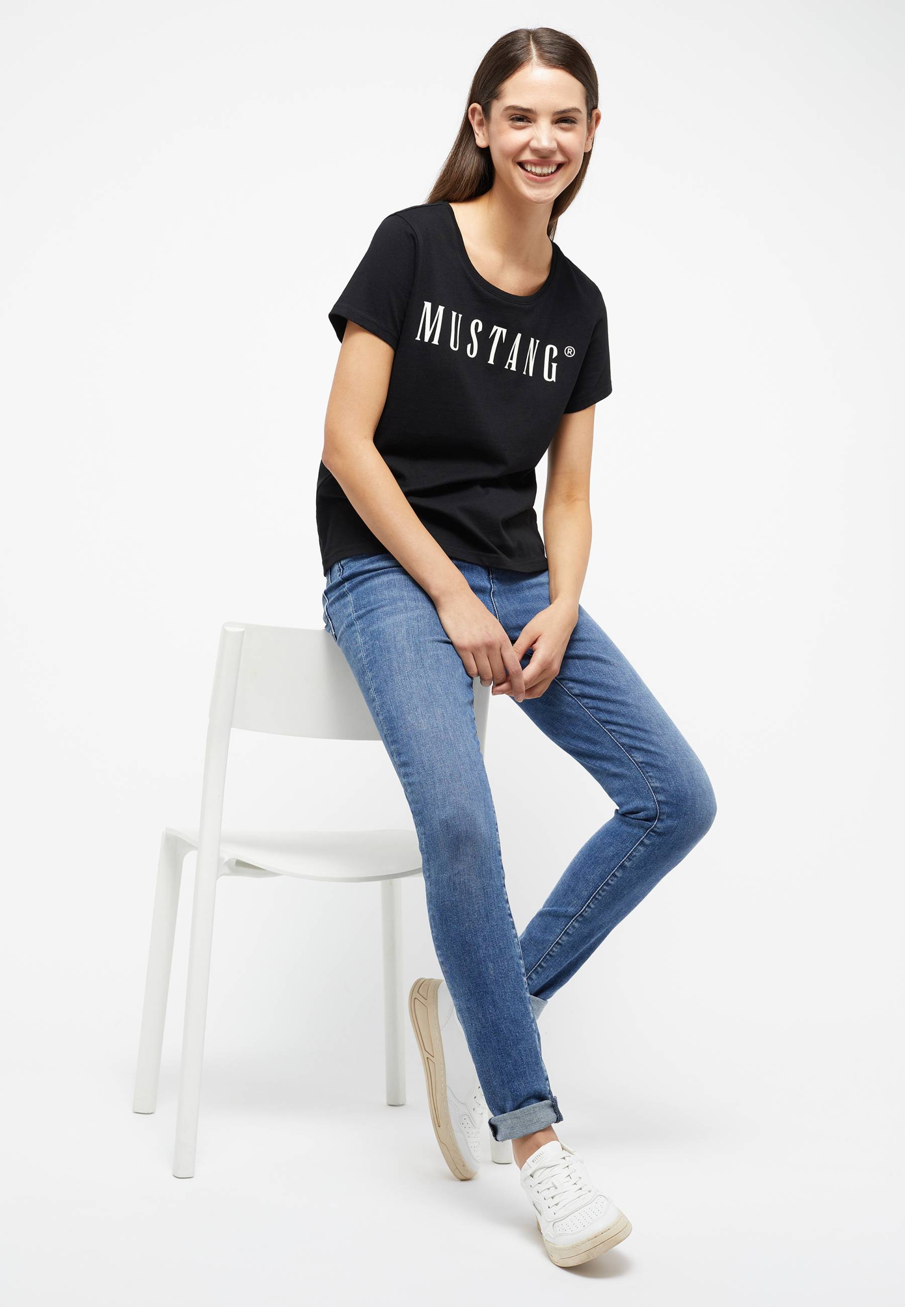 Der große Label-Print verpasst diesem T-Shirt von Mustang einen individuellen Charakter. Der lockere Schnitt, ein bequemer Rundhalsausschnitt und softe Baumwolle sorgen für einen hohen Tragekomfort. Du kannst das Shirt zu allem tragen, was dir gefällt. Lässig wird es mit Jeans oder Sweatpants. FÜR DICH: Das Produkt haben wir dauerhaft ins Programm aufgenommen!