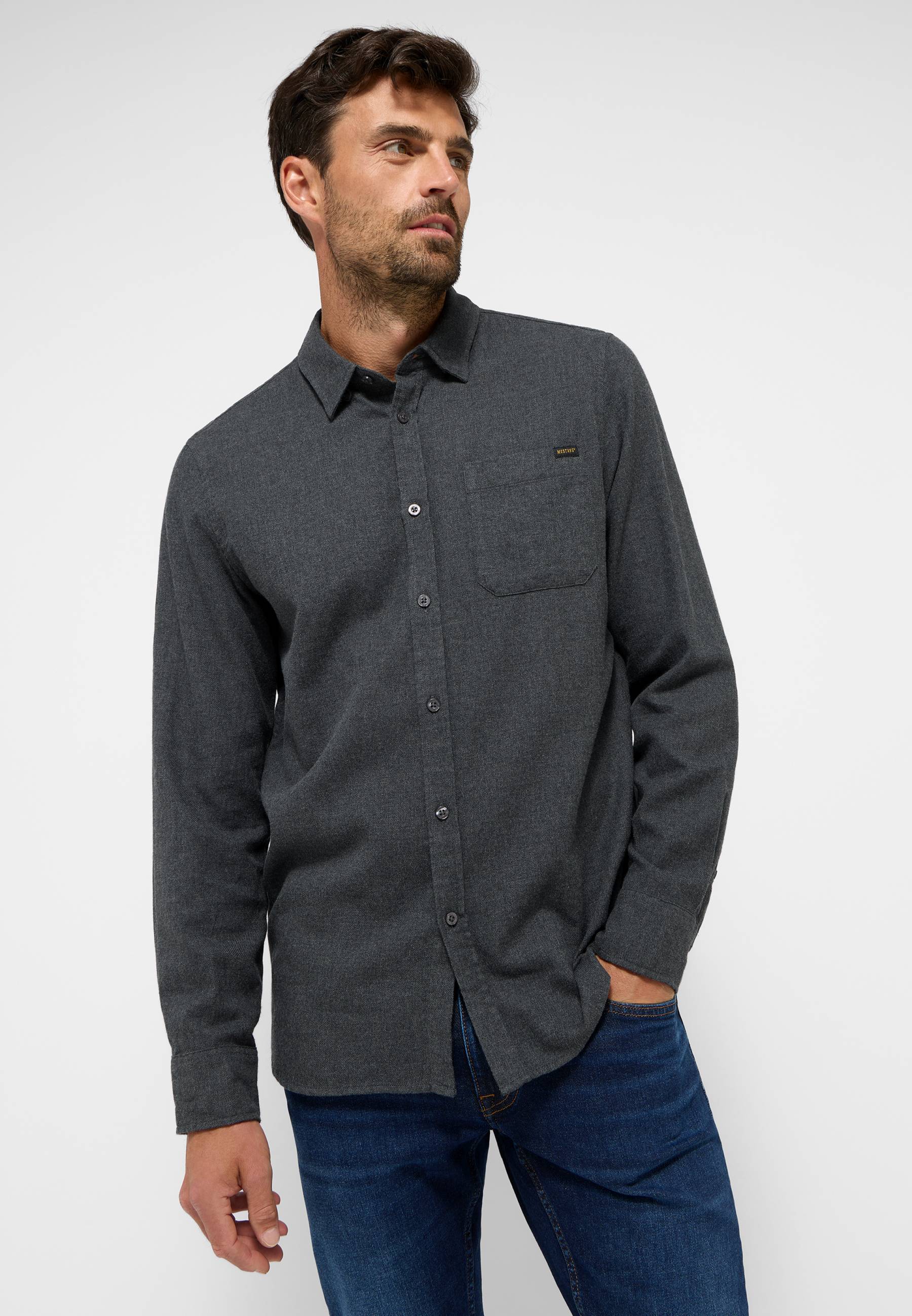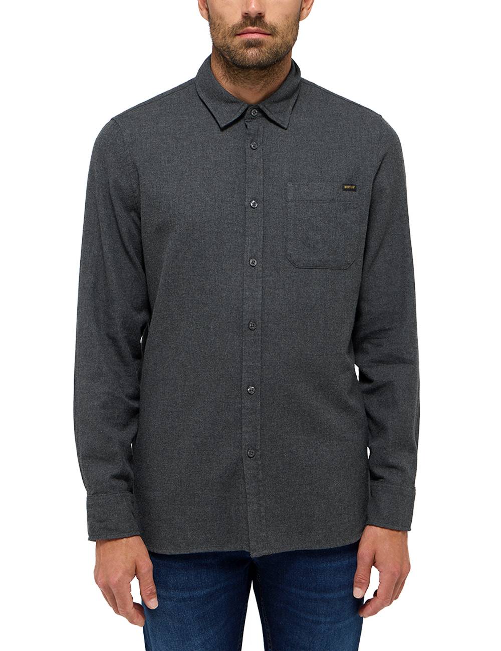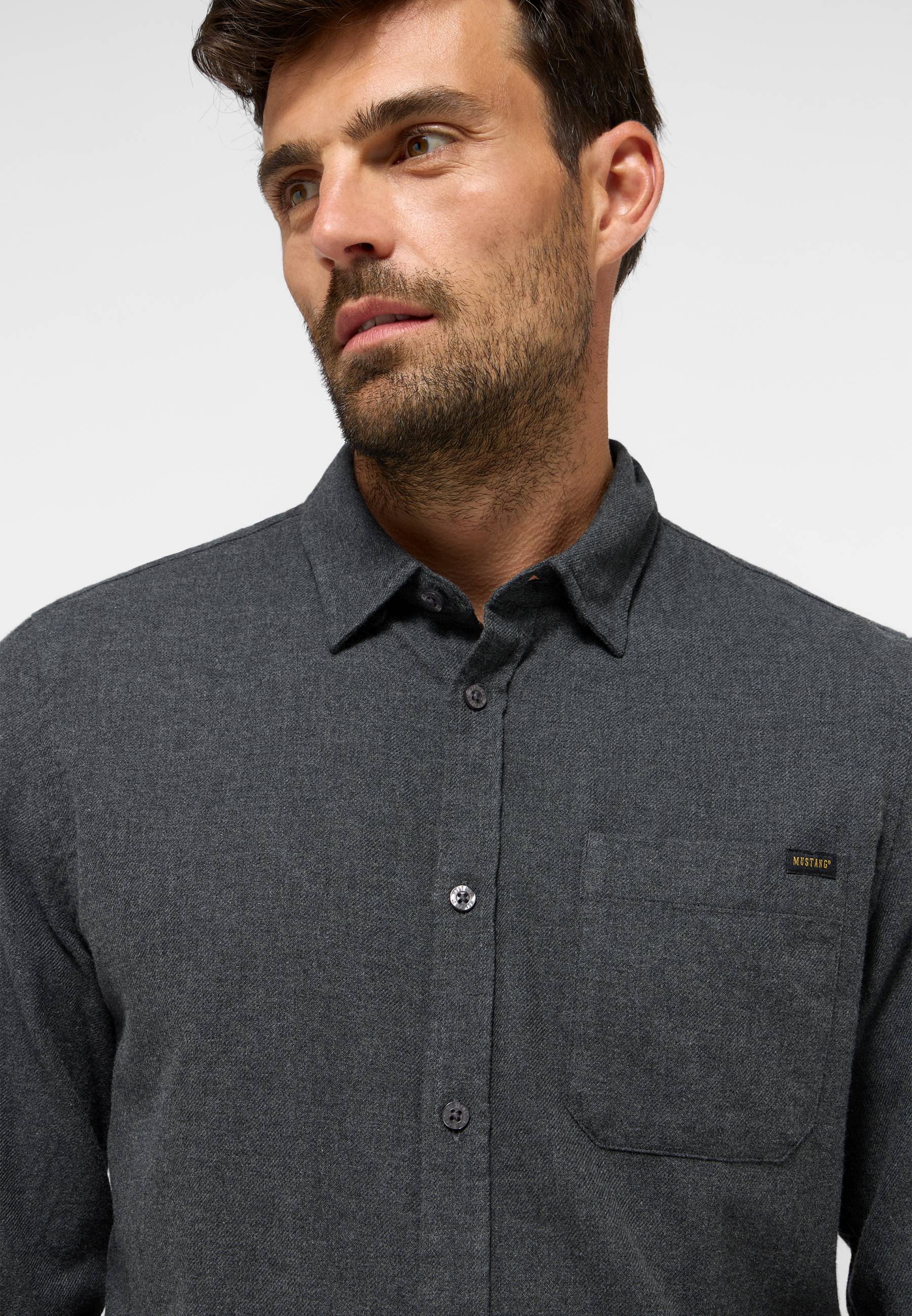 Mit diesem Langarmhemd von Mustang bringst du Dynamik in deine Outfits. Dafür sorgt die Verbreitung aus Melangegarnen. Ein Kentkragen und eine aufgesetzte Brusttasche mit Label-Stickerei rahmt das Design und schließt es ab. Unser Tipp: Style das Hemd als Blickfang in deinem Look und trage monochrome Kleidungsstücke dazu.