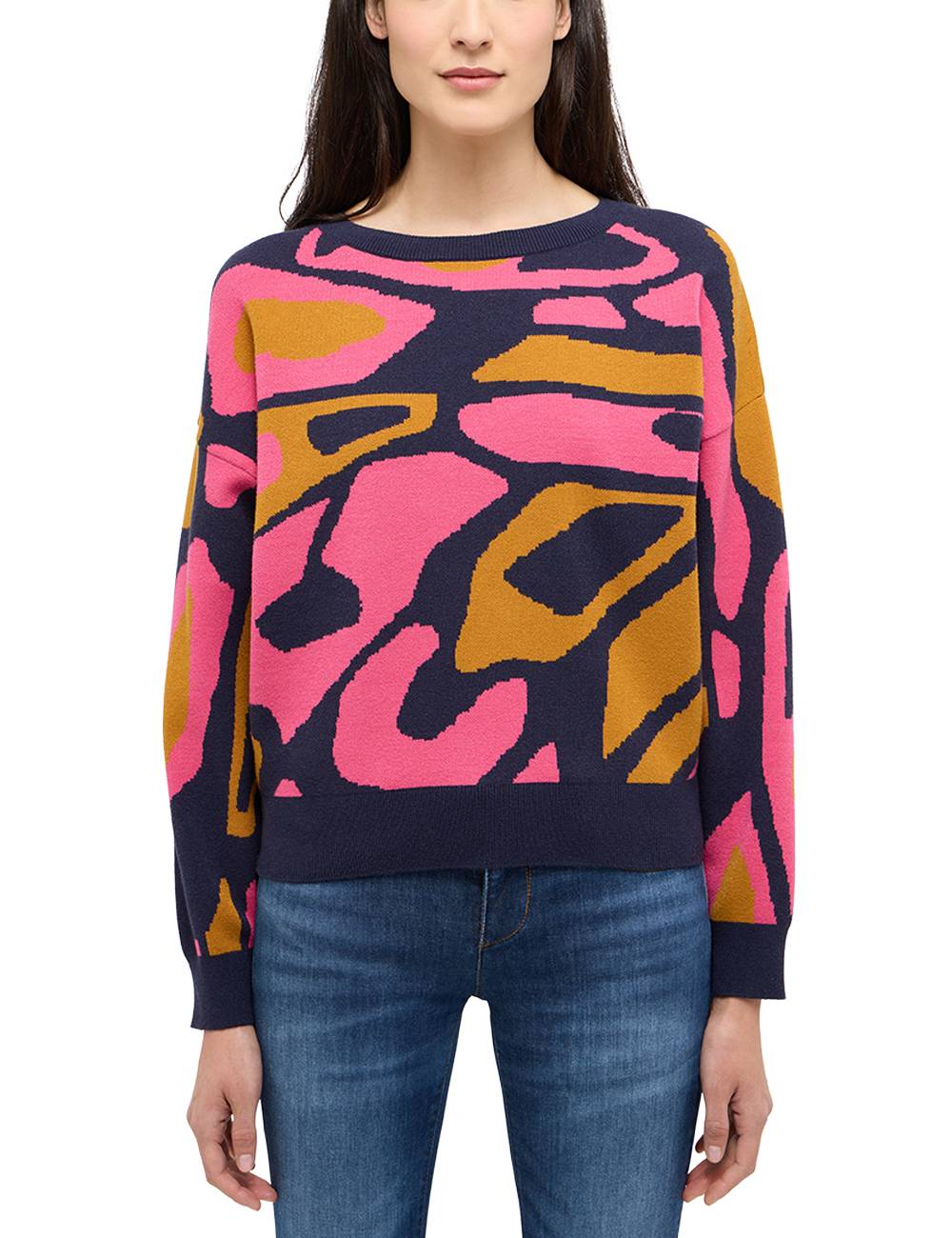 Ein wunderbarer Begleiter in der Freizeit und im Alltag: Dieser auffällige Strickpullover von Mustang bringt Farbe in deine Outfits. Das moderne, abstrakte Muster verleiht ihm eine einzigartige Note. Hergestellt aus einem weichen Kunstfasermix, bietet der Pullover höchsten Tragekomfort. Die gerippten Bündchen und der Rundhalsausschnitt sorgen für eine perfekte Passform.