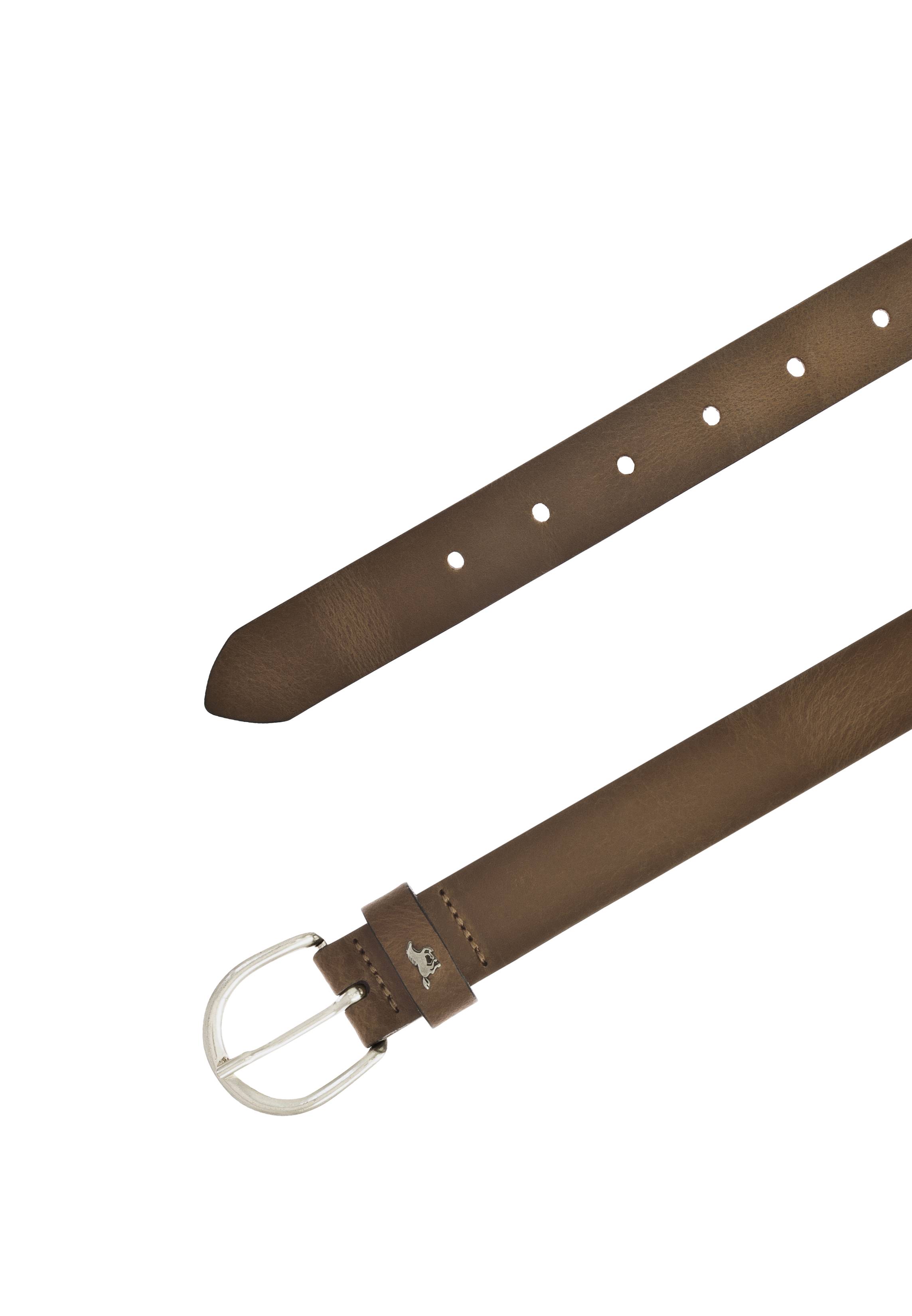 Dieser Gürtel wird dein besonderes neues Lieblingsteil. Dezent und filigran gearbeitet sticht der Damen-Ledergürtel durch seien Details hervor. Das in Metall-Auflage an der Schlaufe gearbeitete Logopferd und die fein abgerundete Dornschließe geben dem Ledergürtel das gewisse Extra. Stilsicher mit jedem Outfit - das bietet dir dein neues Lieblingsstück.