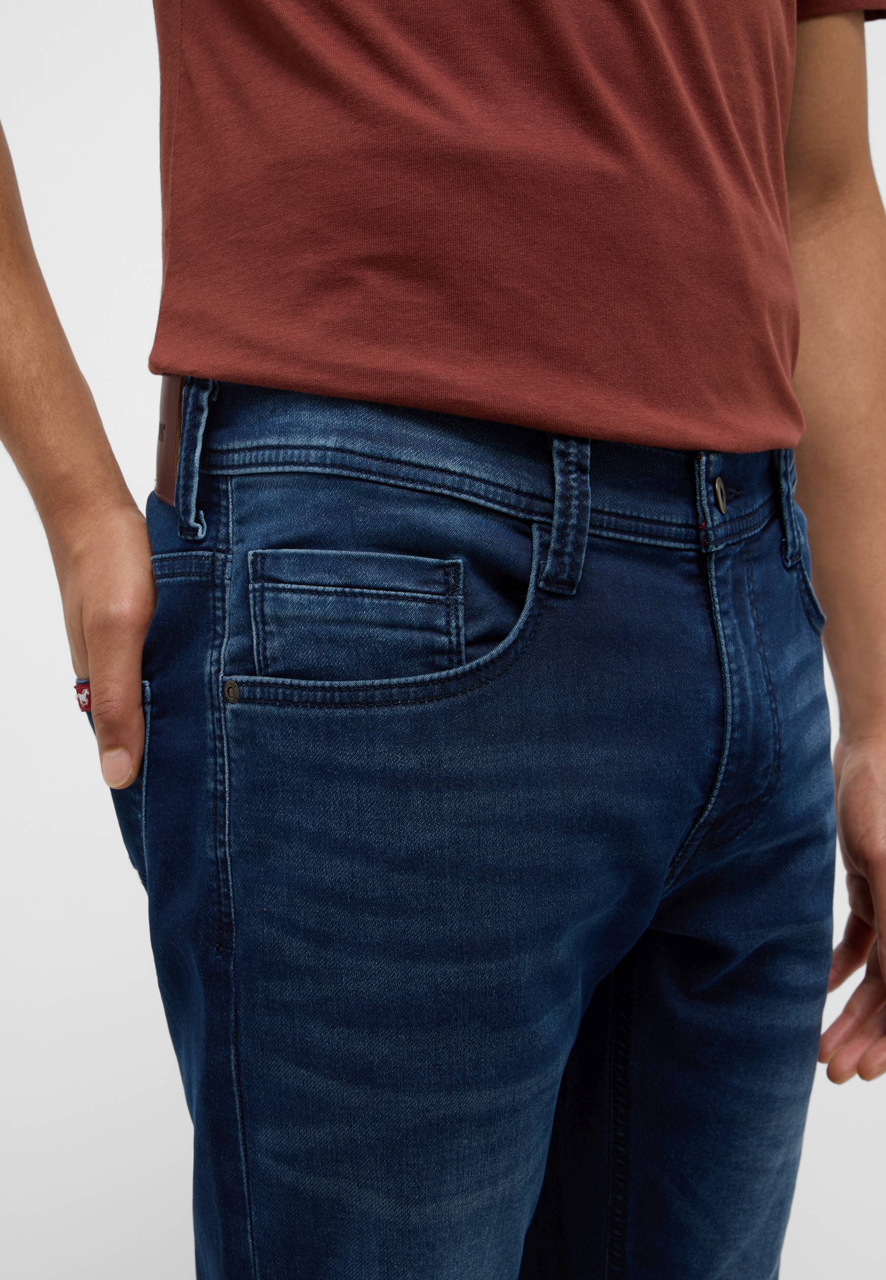Erlebe den echten Denim-Look mit dem Komfort einer Jogginghose – das bieten dir unsere neuen knitted Jeans! Der elastische Baumwollmix der Oregon Slim K von Mustang garantiert angenehmen Tragekomfort und eine optimale Passform. Diese bis ins Detail perfekt gearbeitete 5-Pocket-Jeans ist ideal für jeden Tag. Dank ihrer Used-Waschung strahlt sie eine besonders lässige Atmosphäre aus.