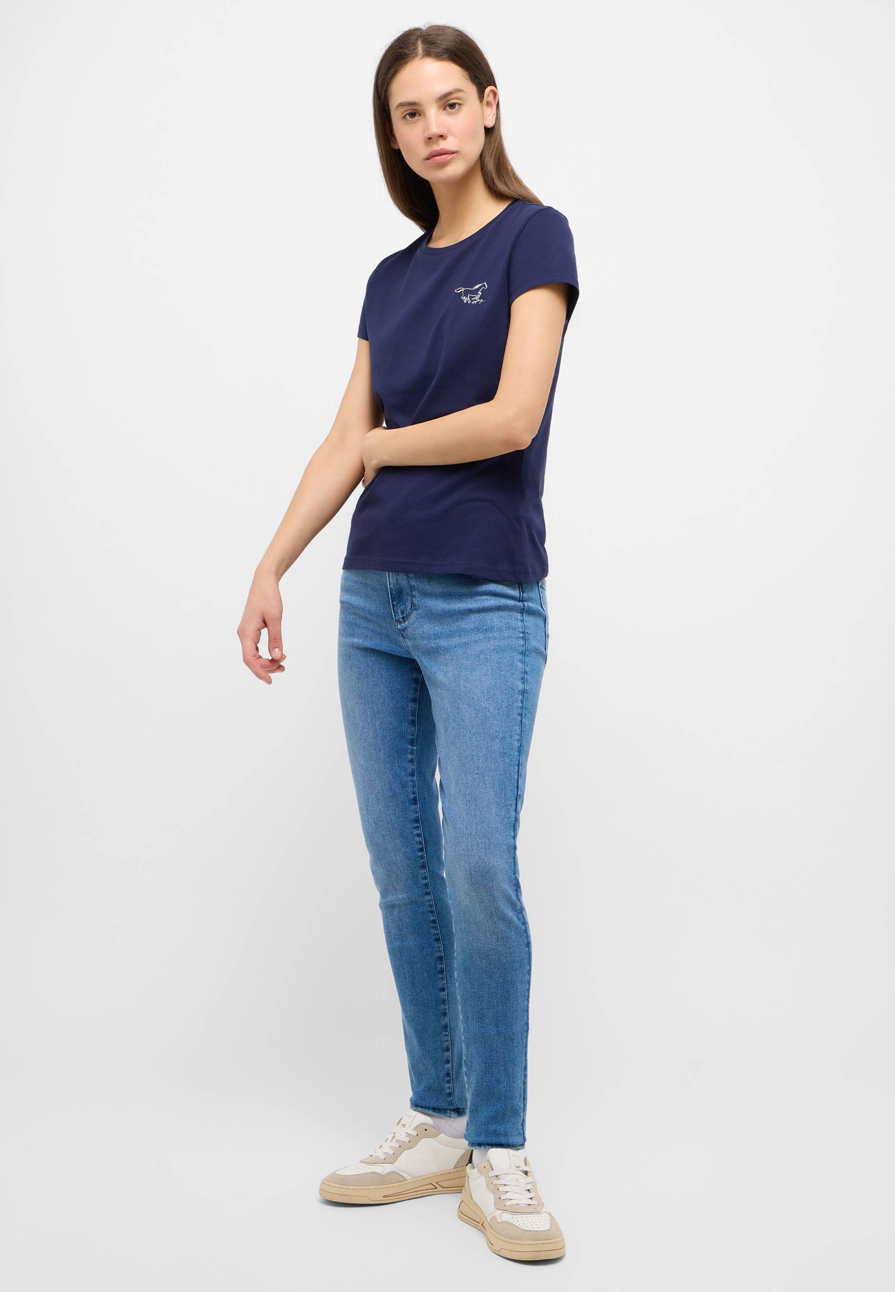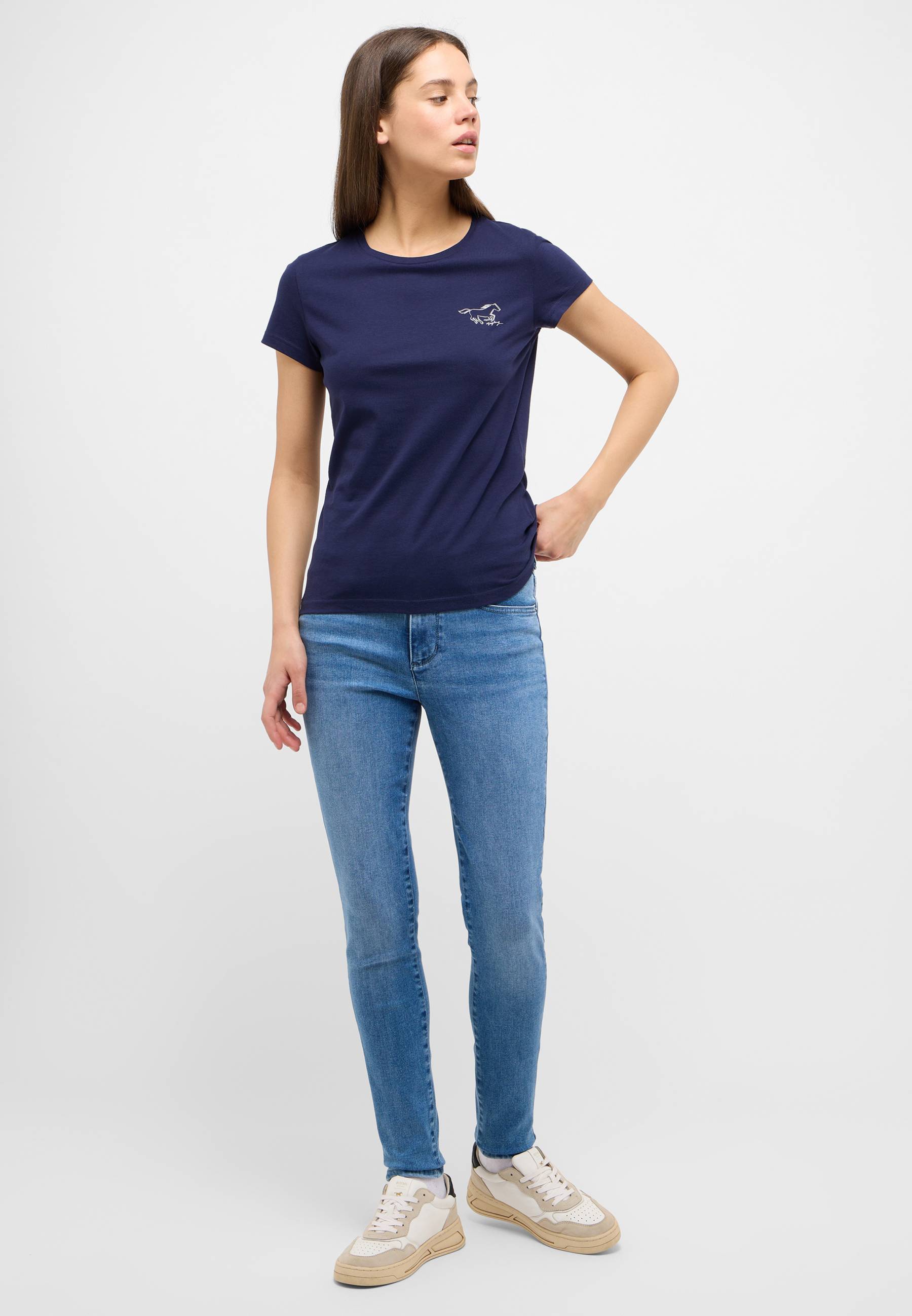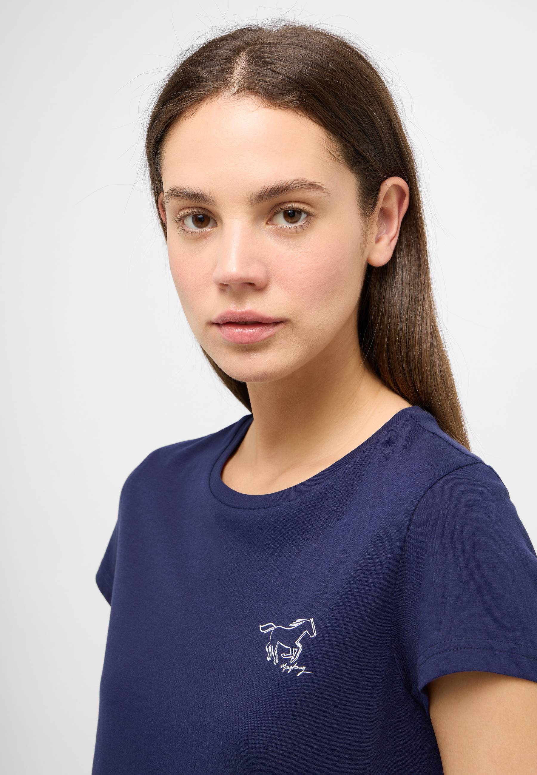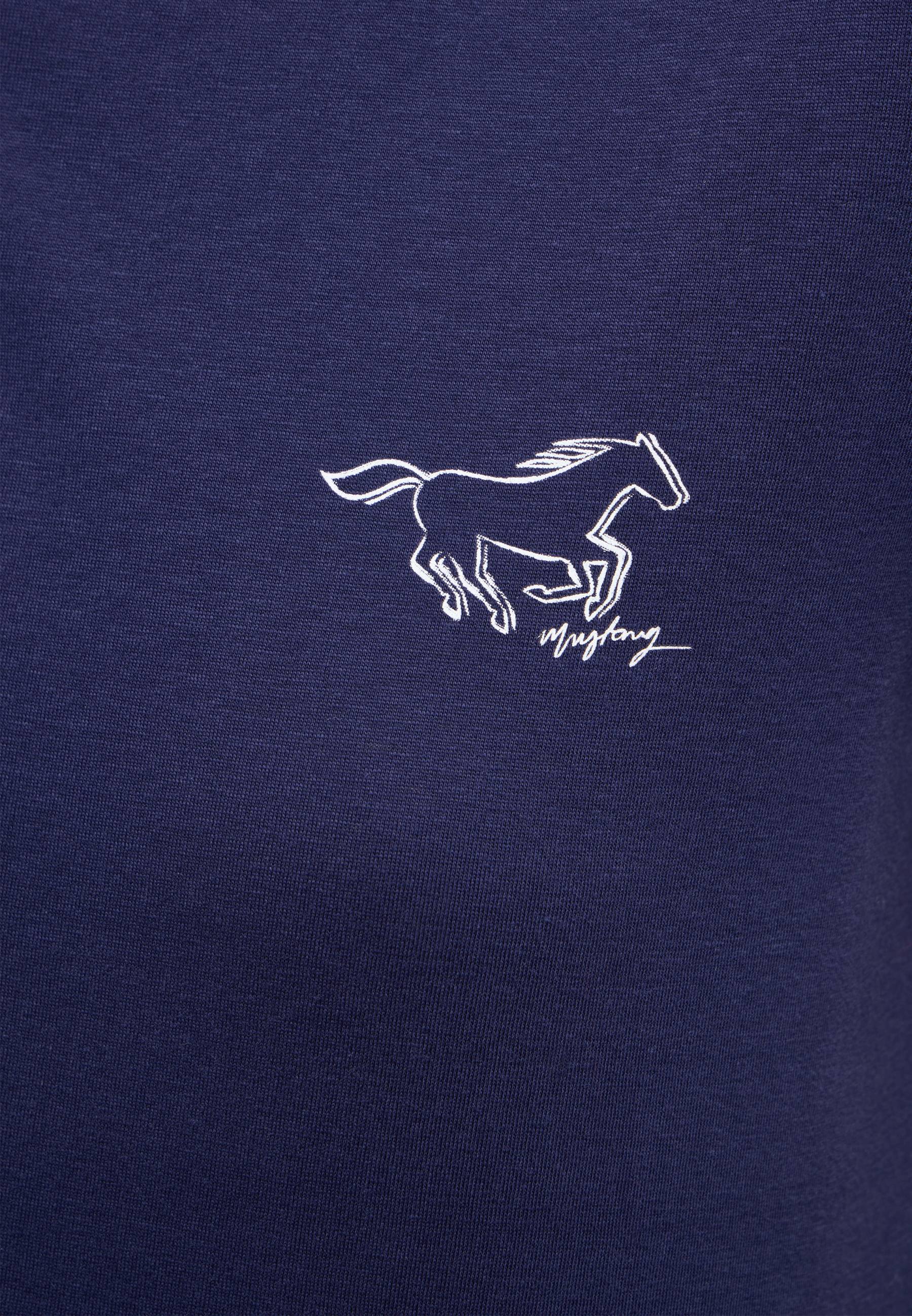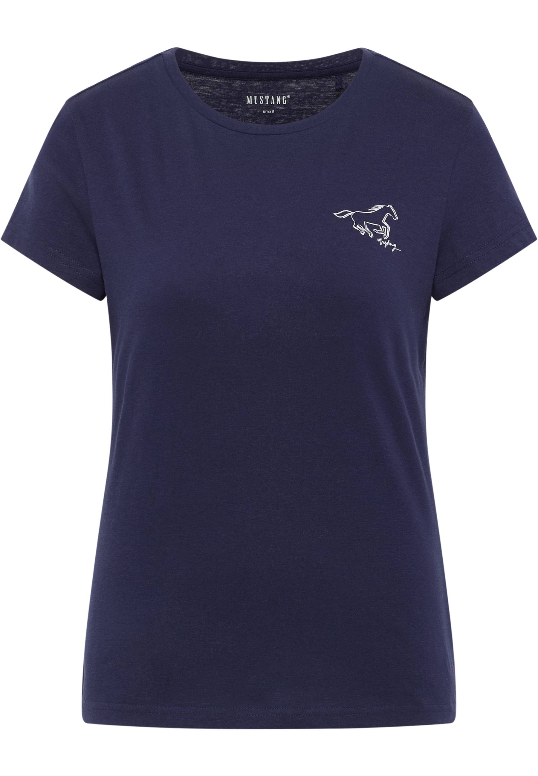Was ein dezenter Print in einem cleanen Design ausmachen kann, zeigt dieses Shirt von Mustang. Die charakteristische Optik von Rundhalsausschnitt und kurzen Ärmeln wird auf Brusthöhe von einem Label-Druck begleitet und im Handumdrehen wirkt der zeitlose Basic-Look lässig und charmant. Das Shirt aus atmungsaktiver Baumwolle ist der ideale Partner für Jeans und Sneakers.