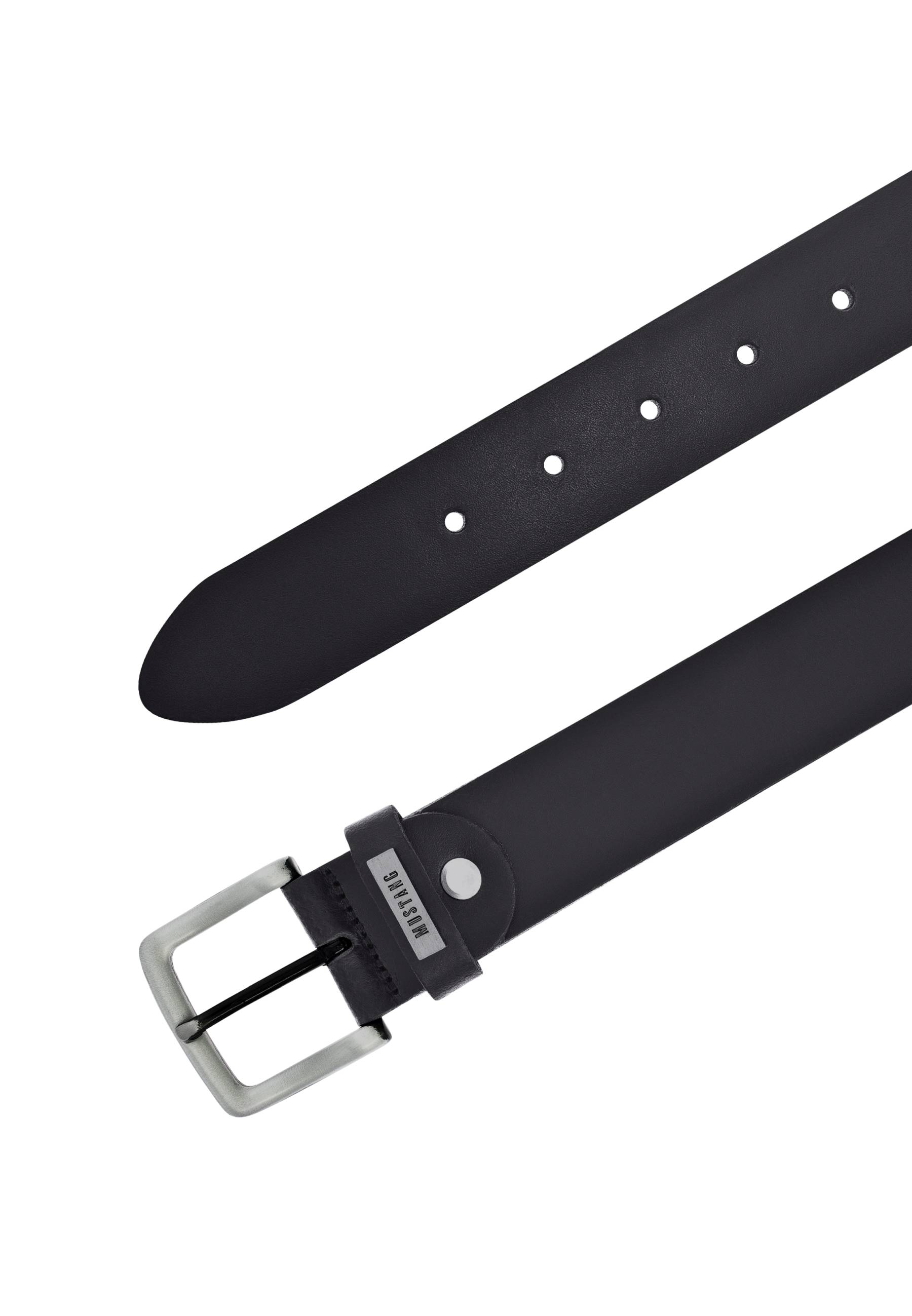 Dieser Glattledergürtel von Mustang besticht durch seine filigrane eckig gearbeitete Dornschließe aus schwarz-satiniertem Silber und die in die Lederschlaufe gearbeitete Logoprägung auf einem Metalldetail. Stilvoll passt sich der Gürtel in jedes Outfit ein - egal ob leger oder elegant und wird so zum idealen Begleiter. Die Schließe ist separat am Gürtel befestigt, was das Kürzen des Gürtelstraps ermöglicht.