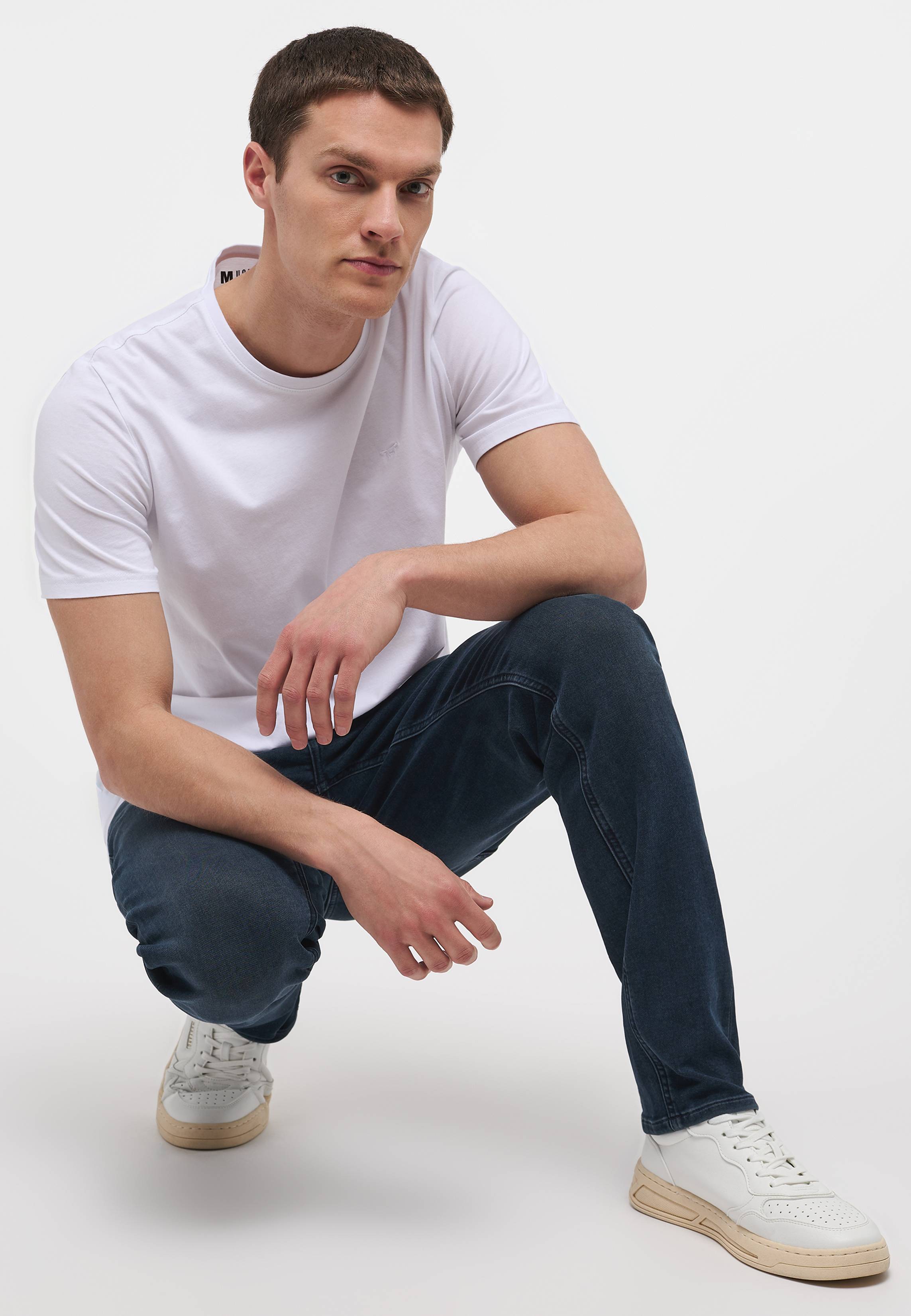 True Denim Look mit dem Komfort einer Jogginghose, das bekommst du mit unseren neuen knitted Jeans! Mustangs Oregon Slim im lässigen Slim-Fit ist ein Begleiter für viele Anlässe. Eine dezente Used-Waschung und Kontrastnähte heben den urbanen Charakter der Jeans hervor. Die elastische Baumwollmischung unterstreicht den Tragekomfort und sorgt für einen optimalen Sitz. Ob mit Shirt oder Hemd, das 5-Pocket-Modell punktet auf ganzer Linie. FÜR DICH: Das Produkt haben wir dauerhaft ins Programm aufgenommen!