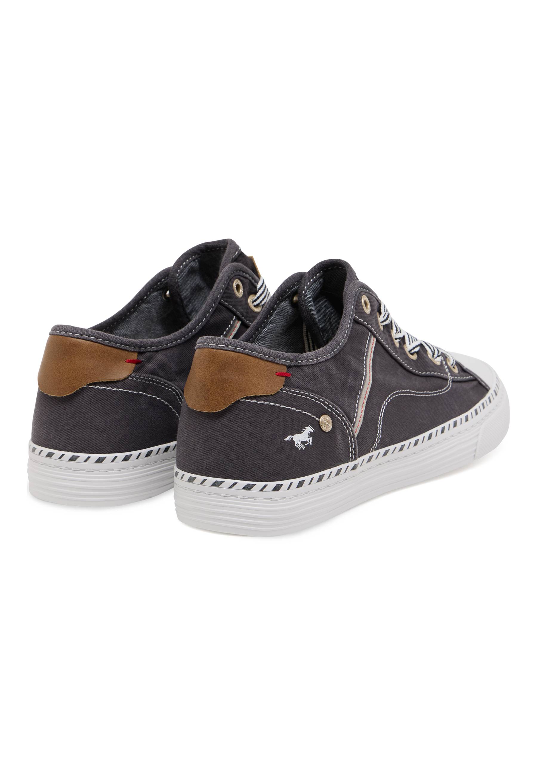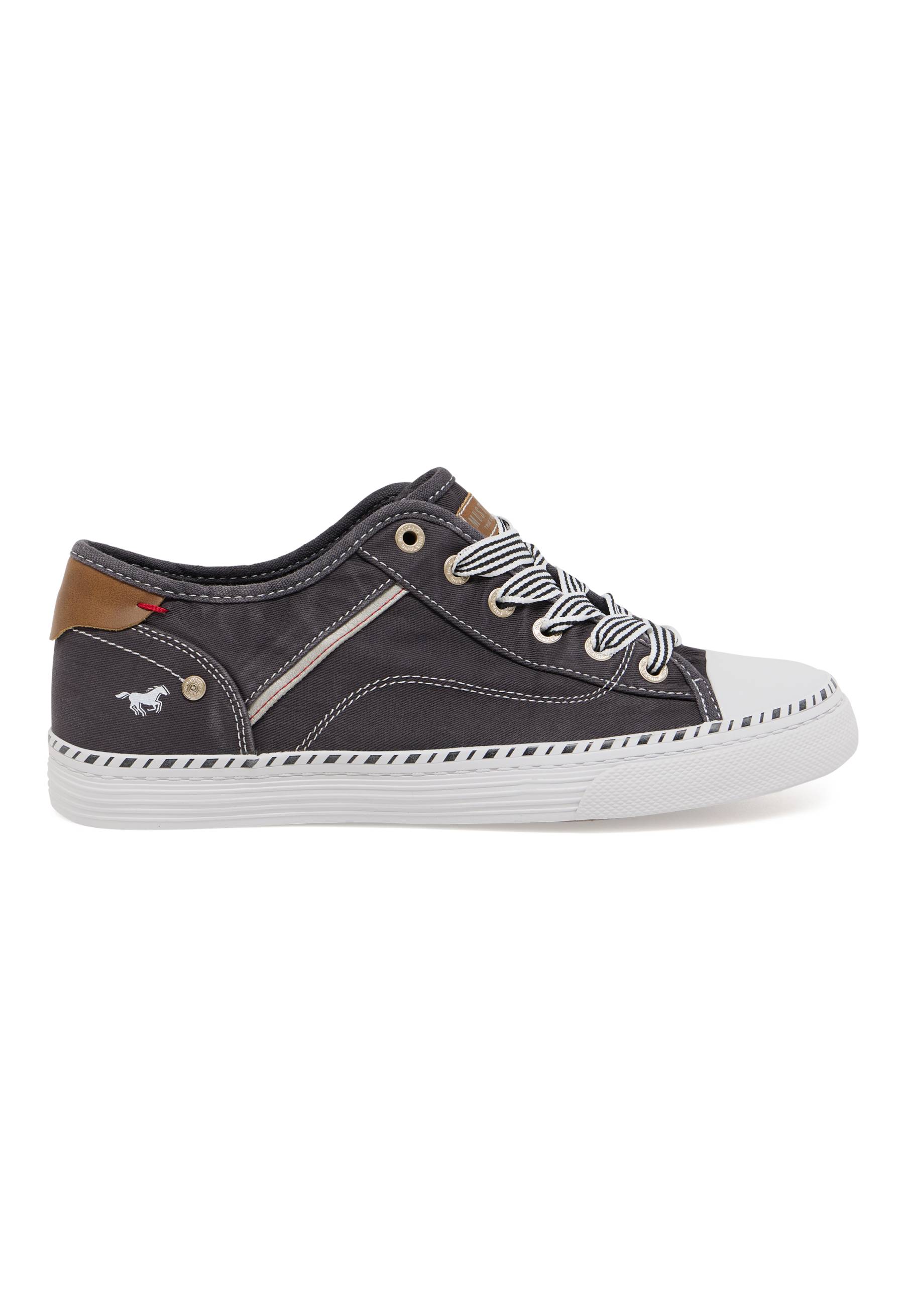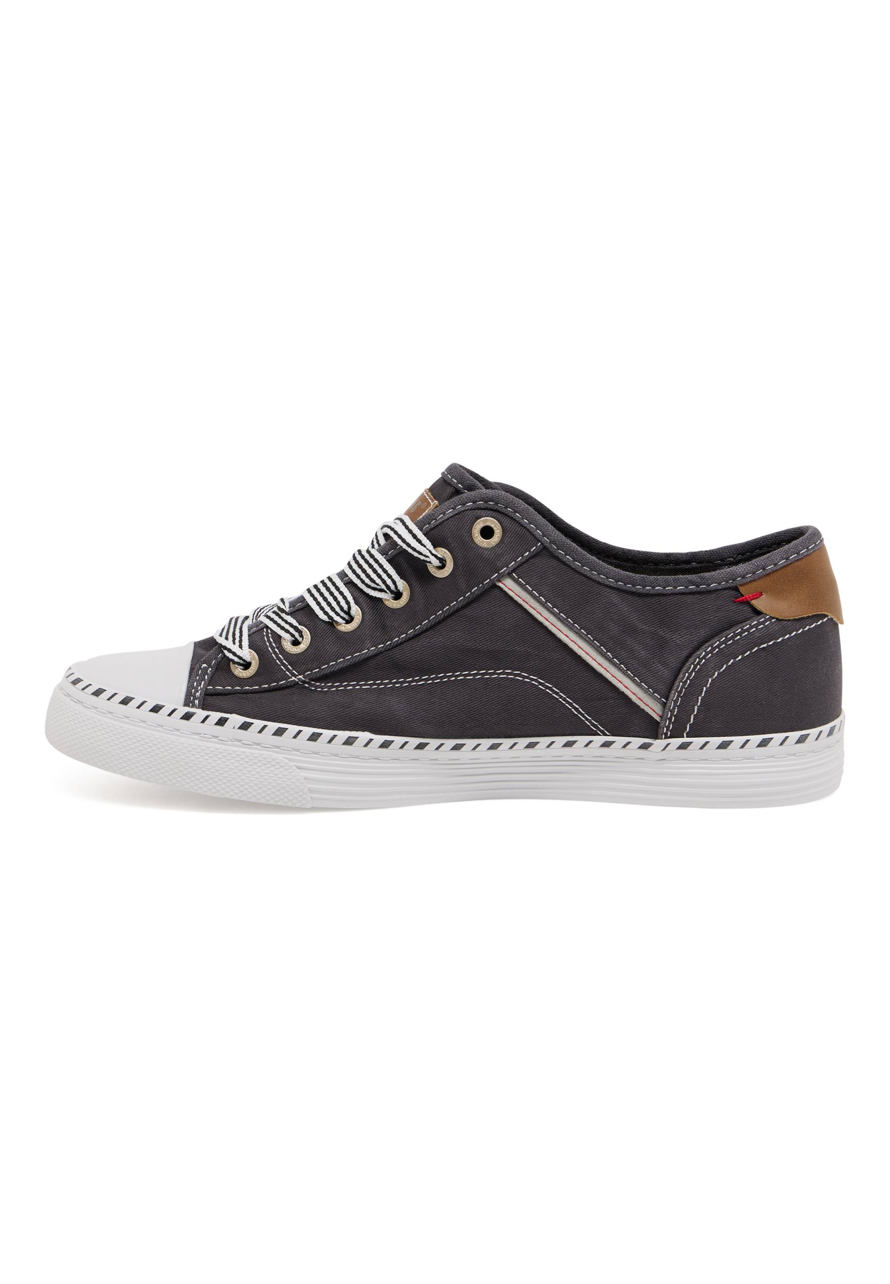 Diese Sneakers von Mustang passen bestens zu deinen Outdooraktivitäten. Mithilfe der Ösenschnürung kannst du die Weite individuell an deine Fussform anpassen. Die profilierte Sohle aus Gummi sorgt für einen sicheren Halt. Der Denim-Style mit gestreiften Bändern kommt mit Shirt und Jeans besonders gut zur Geltung.