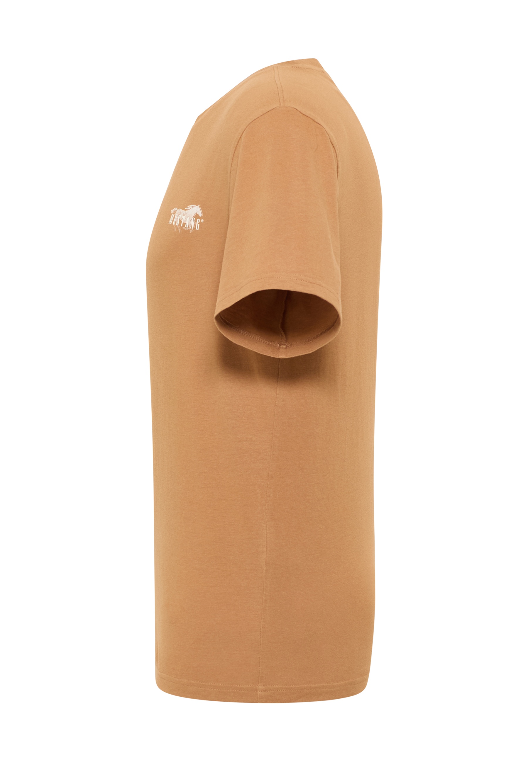 Mit diesem T-Shirt aus zertifiziert biologischer Baumwolle zeigt Mustang, wie unkompliziert Nachhaltigkeit und Stil zusammengehen. Der Label-Print auf Brusthöhe ist ein dezenter Blickfang. Für einen lässigen Look trage das Shirt zu Jeans und Sneakern.