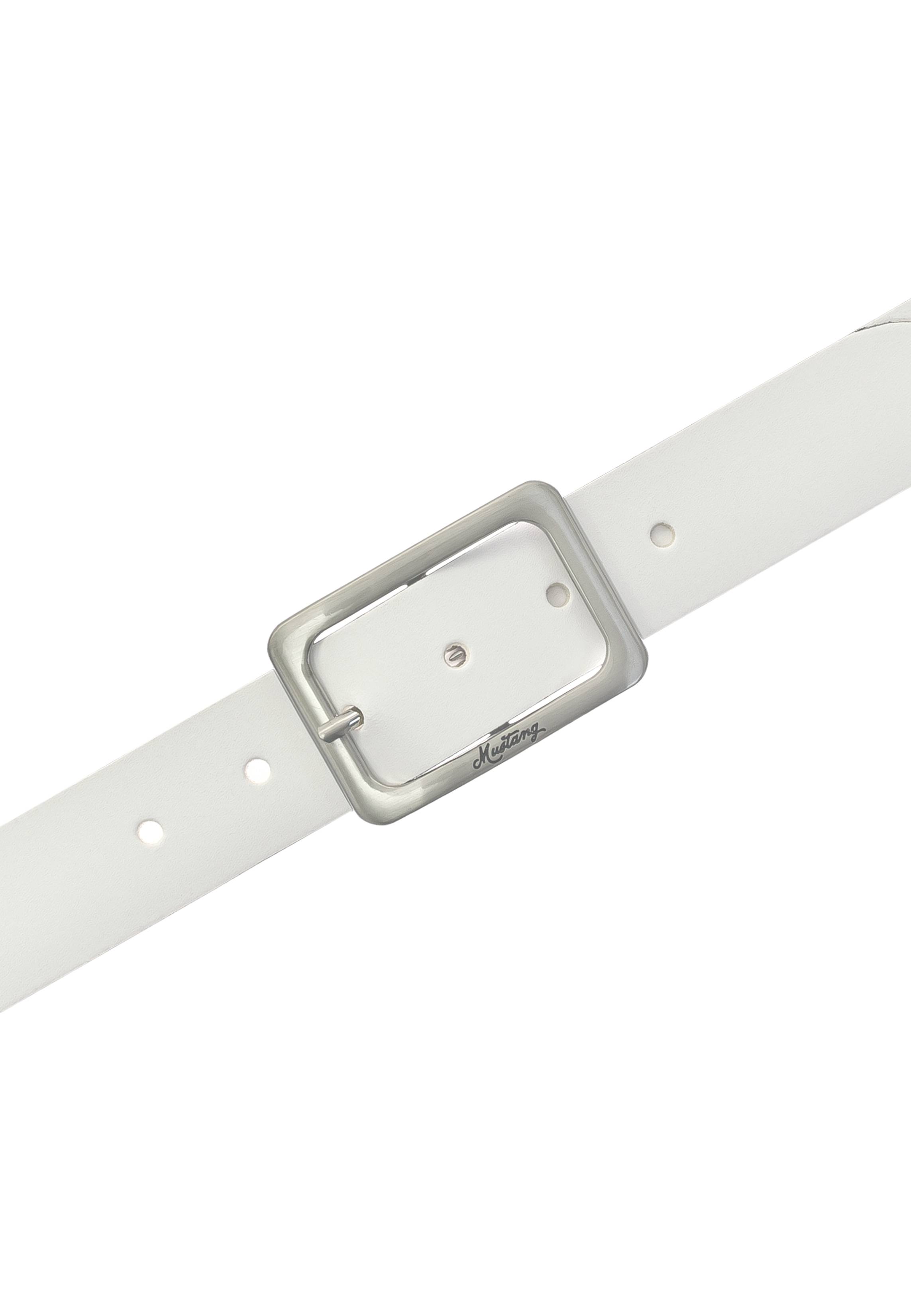 Der Echtleder-Gürtel von Mustang ist 35 mm breit und mit einer Doppelschließe in mattem Silber verziert. Das Material ist ein Leder in leichter Pull-Up-Optik mit Vintagecharakter. Dieser Gürtel ist die ideale Ergänzung zu allen Freizeit-Outfits und garantiert einen casual und seriösen Look.