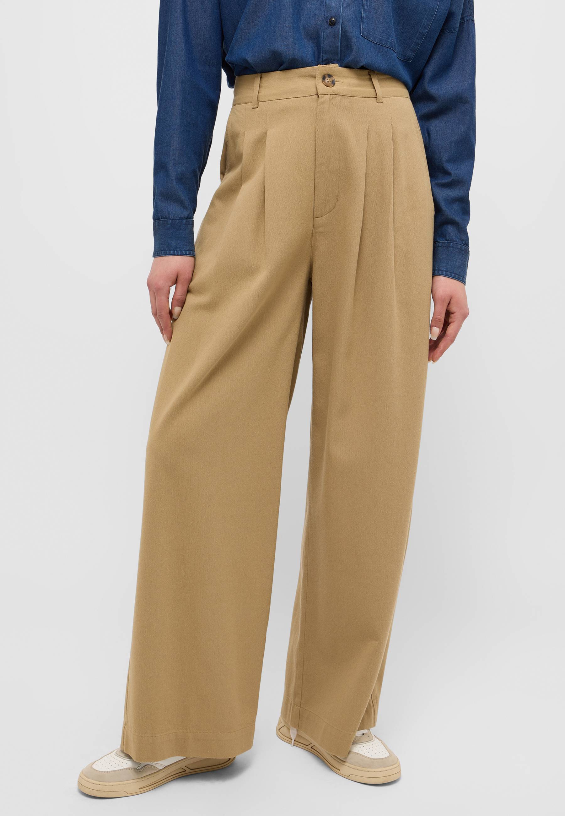 Lässigkeit mit Chic: kein Problem mit dieser Hose von Mustang. Das weit geschnittene Modell mit den modernen Bundfalten besteht aus einem pflegeleichten Baumwollmix, der für einen exzellenten Tragekomfort sorgt. Für einen Business-Look trage die Hose einfach mit Pumps und einer dezenten Bluse.