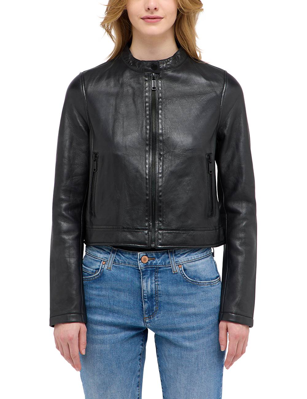 Diese Lederjacke von Mustang bringt mehr Coolness in deinen Alltag. Ein leicht taillierter Schnitt und ein Stehkragen mit Druckknopf sorgen für einen authentischen Biker-Stil. Zwei Reißverschlusstaschen runden das Design der Jacke ab. Mit Jeans und Sneakern kommt das Modell aus weichem Lammleder besonders gut zur Geltung.