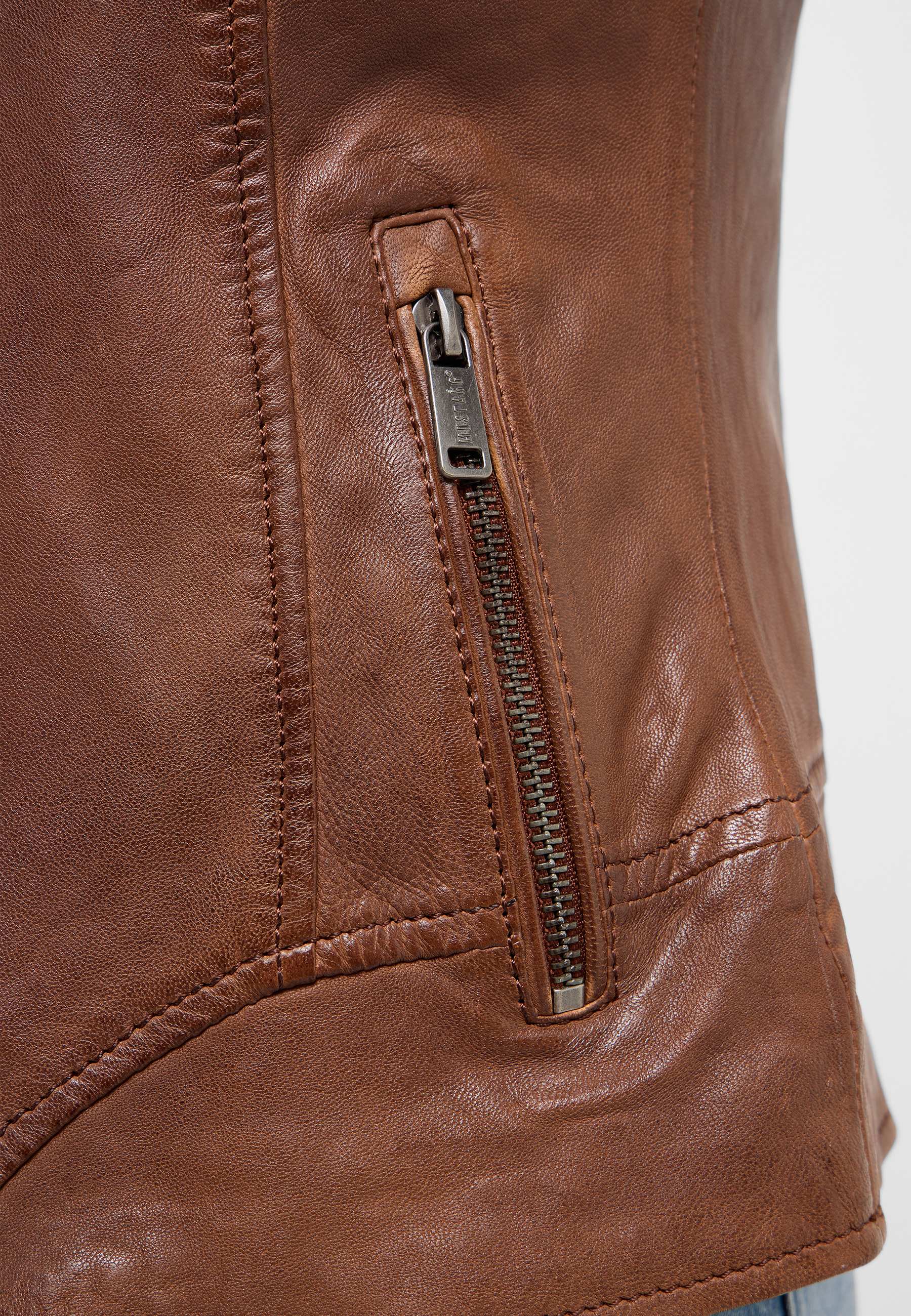 Diese Jacke von Mustang vereint hochwertiges Lammleder mit stilvollem Design. Sie überzeugt sie mit geschmeidigem Griff und einem hervorragenden Komfort. Der cleane Look mit Stehkragen, durchgehendem Reißverschluss und Teilungsnähten passt zu urbanen Looks genauso wie zum Casual-Outfit. Das farblich abgestimmte, gemusterte Innenfutter mit praktischen Innentaschen rundet das Design ab.