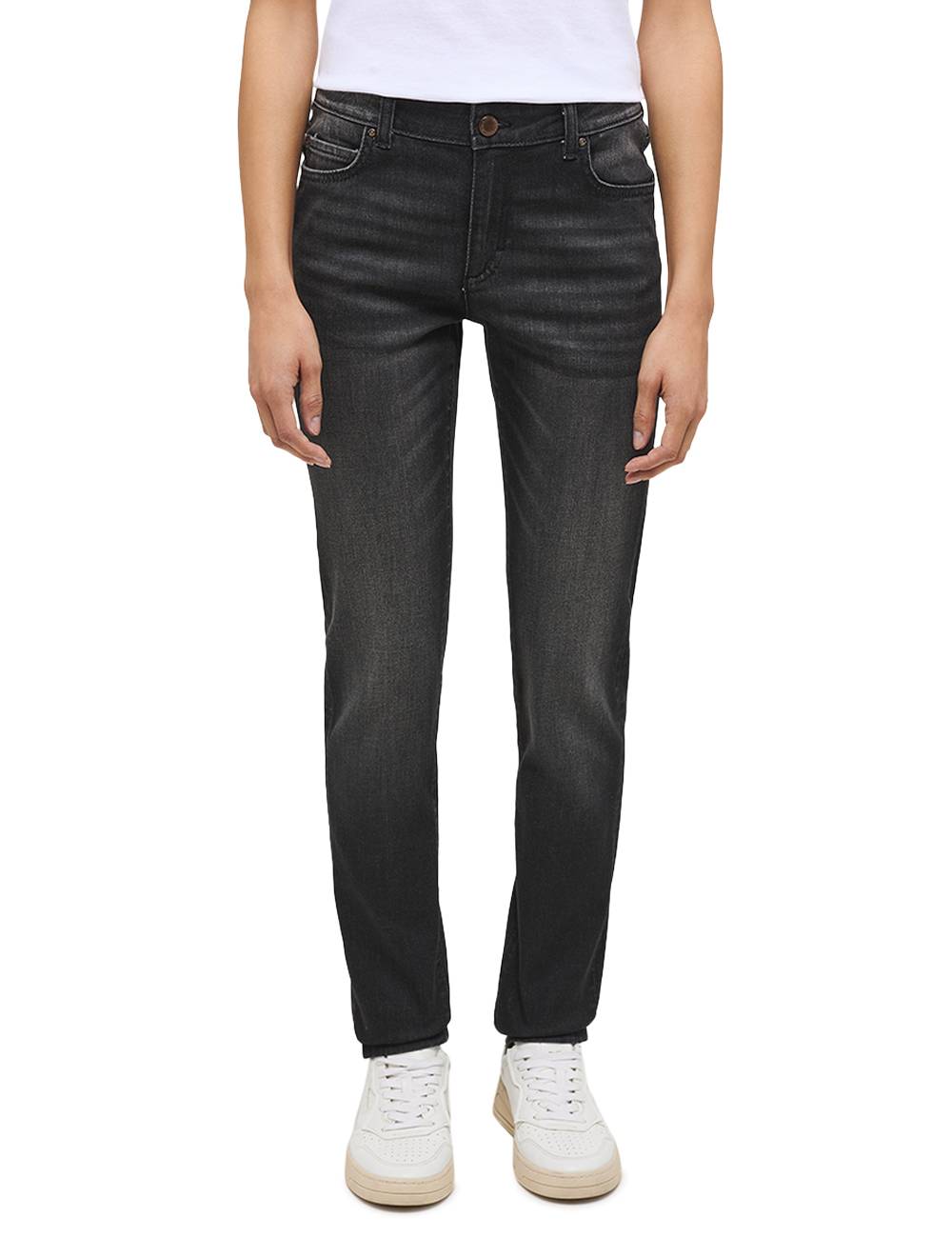 - Jeans mit mittlerer Bundhöhe und schmalem Beinverlauf