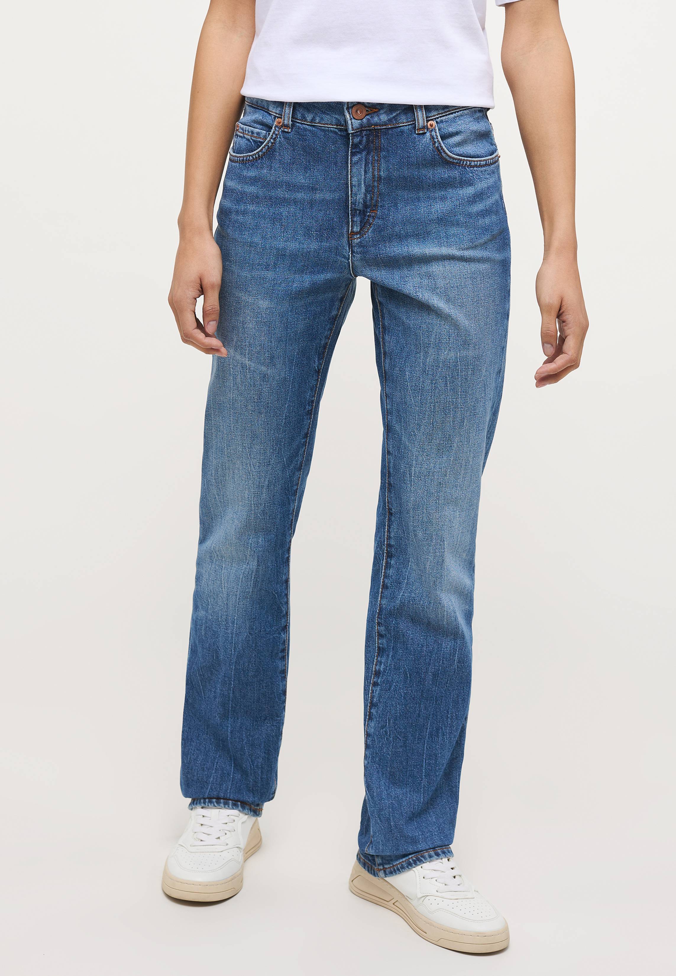 - Jeans mit mittlerer Bundhöhe und schmalem Beinverlauf