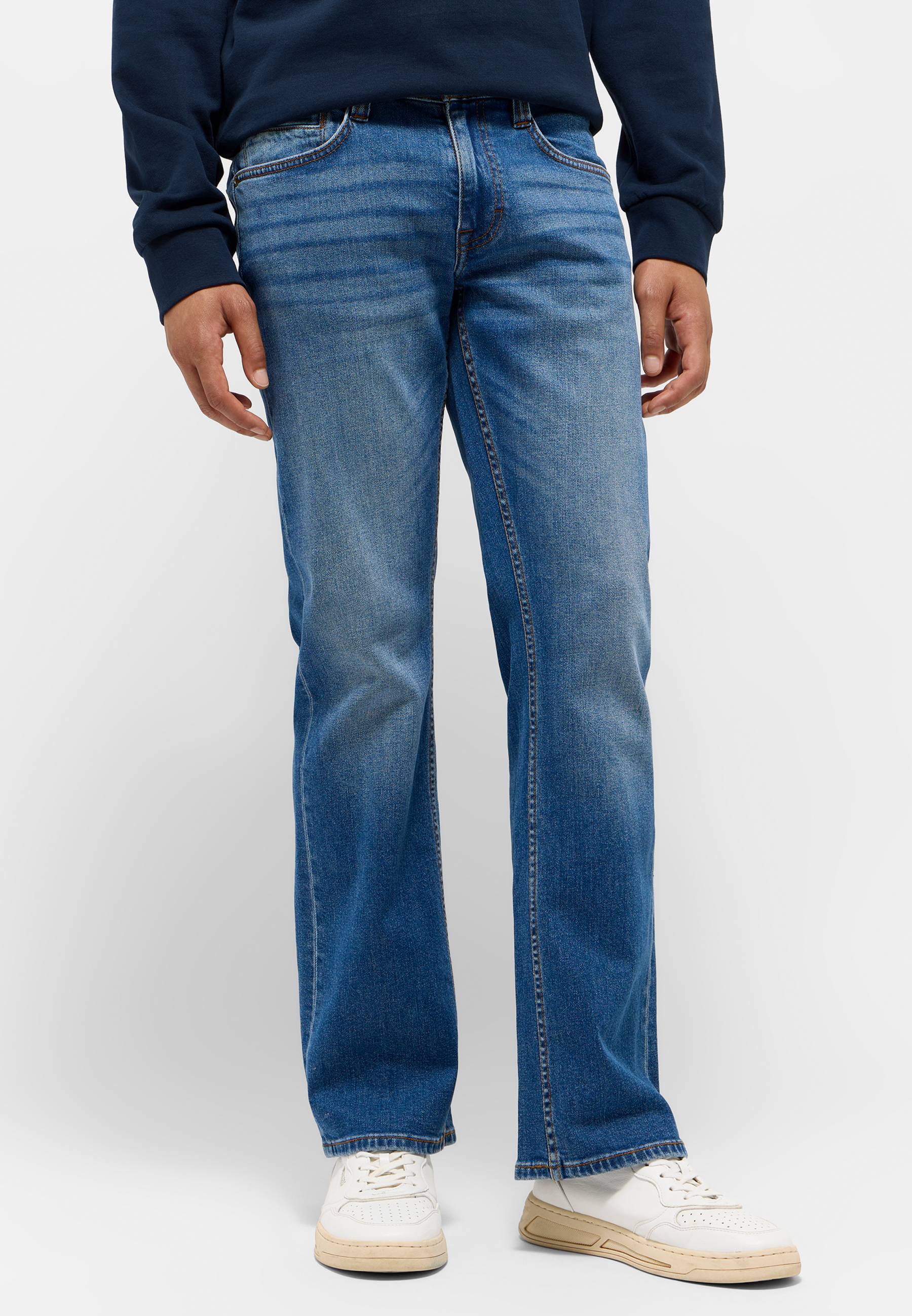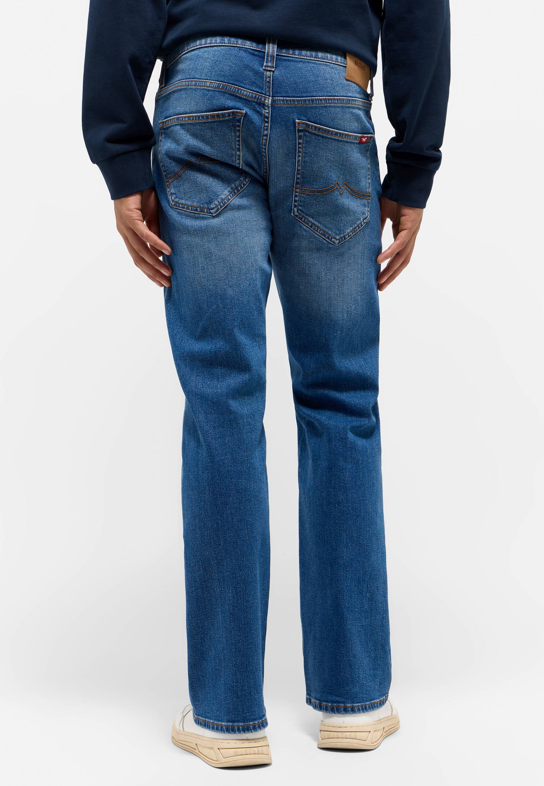 Stehst du auf einen kernigen Look? Dann ist die Oregon Boot von Mustang genau das Richtige für dich. Diese 5-Pocket-Jeans ist mit ihrem authentischen Boot Cut und schmalem Schnitt ein echter Klassiker. Die Used-Waschung und Kontrastnähte betonen den lässigen Stil, der besonders gut mit Hemd und Sneakern zur Geltung kommt.