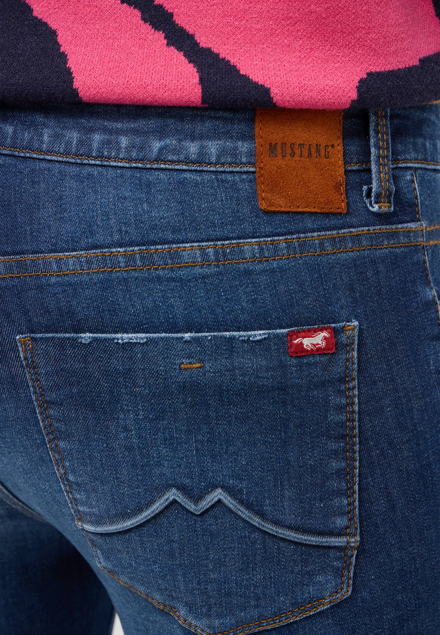 Die Quincy Skinny von Mustang bietet alles, was eine Jeans ausmacht. Der elastische Baumwollmix gewährleistet uneingeschränkte Bewegungsfreiheit, während die Used-Waschung und eingearbeitete Tragefalten den lässigen Charakter betonen. Mit einem Print-Shirt und Sneakern setzt du das 5-Pocket-Modell perfekt in Szene.