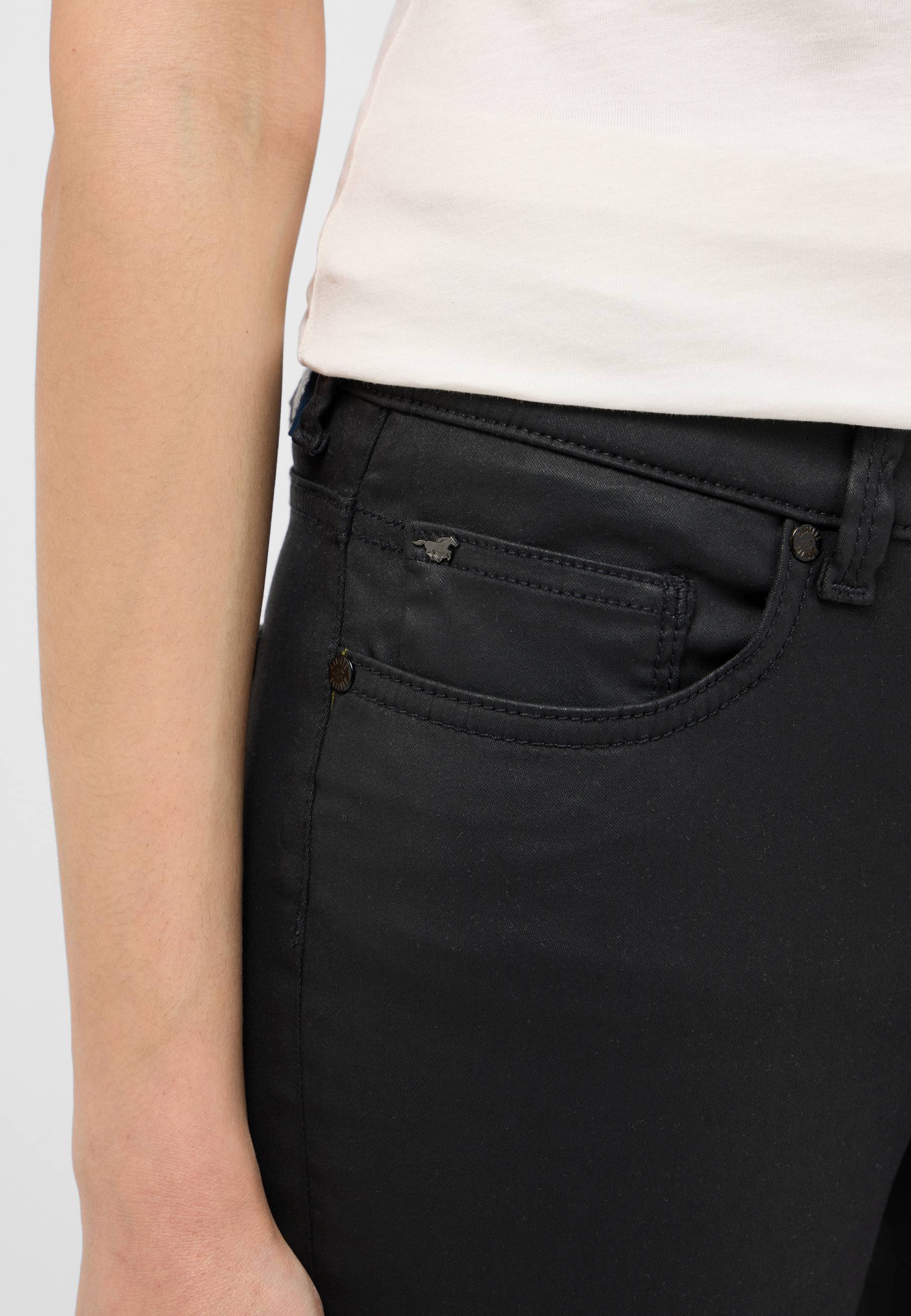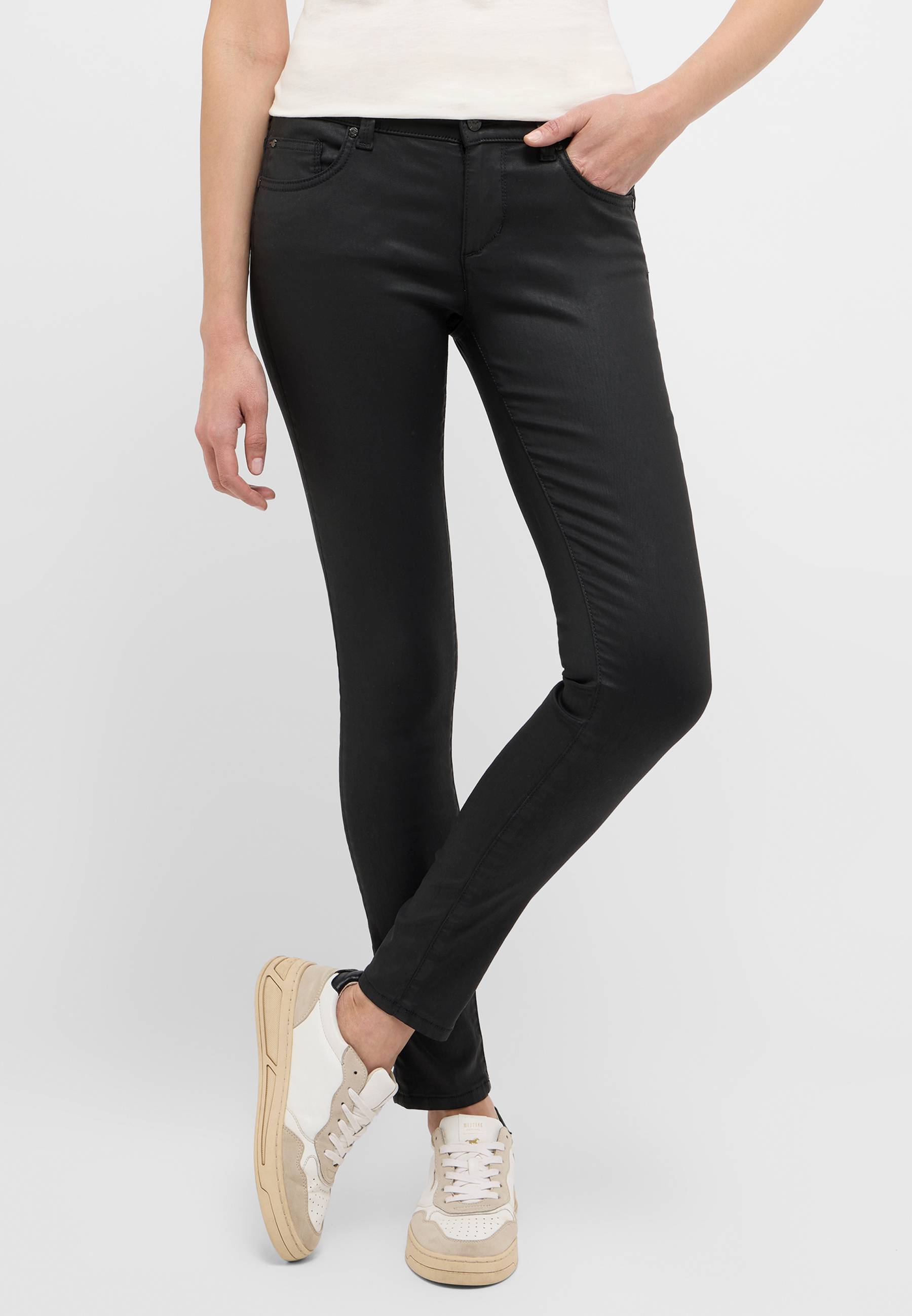 Die Quincy Skinny von Mustang begeistert mit einem elastischen Baumwollmix und einem modernen Design. Nicht zuletzt die auffällige Beschichtung sorgt für das gewisse Etwas. Das sorgt zusammen mit dem schmalen Schnitt für einen hervorragenden Tragekomfort. Klassische Features wie der 5-Pocket-Style und der monochrome Look lassen das Modell zum neuen Lieblingsbegleiter werden. Unser Tipp: lässig mit Print-Shirts und Sneakern, smart zu einem Seidentop und Heels.