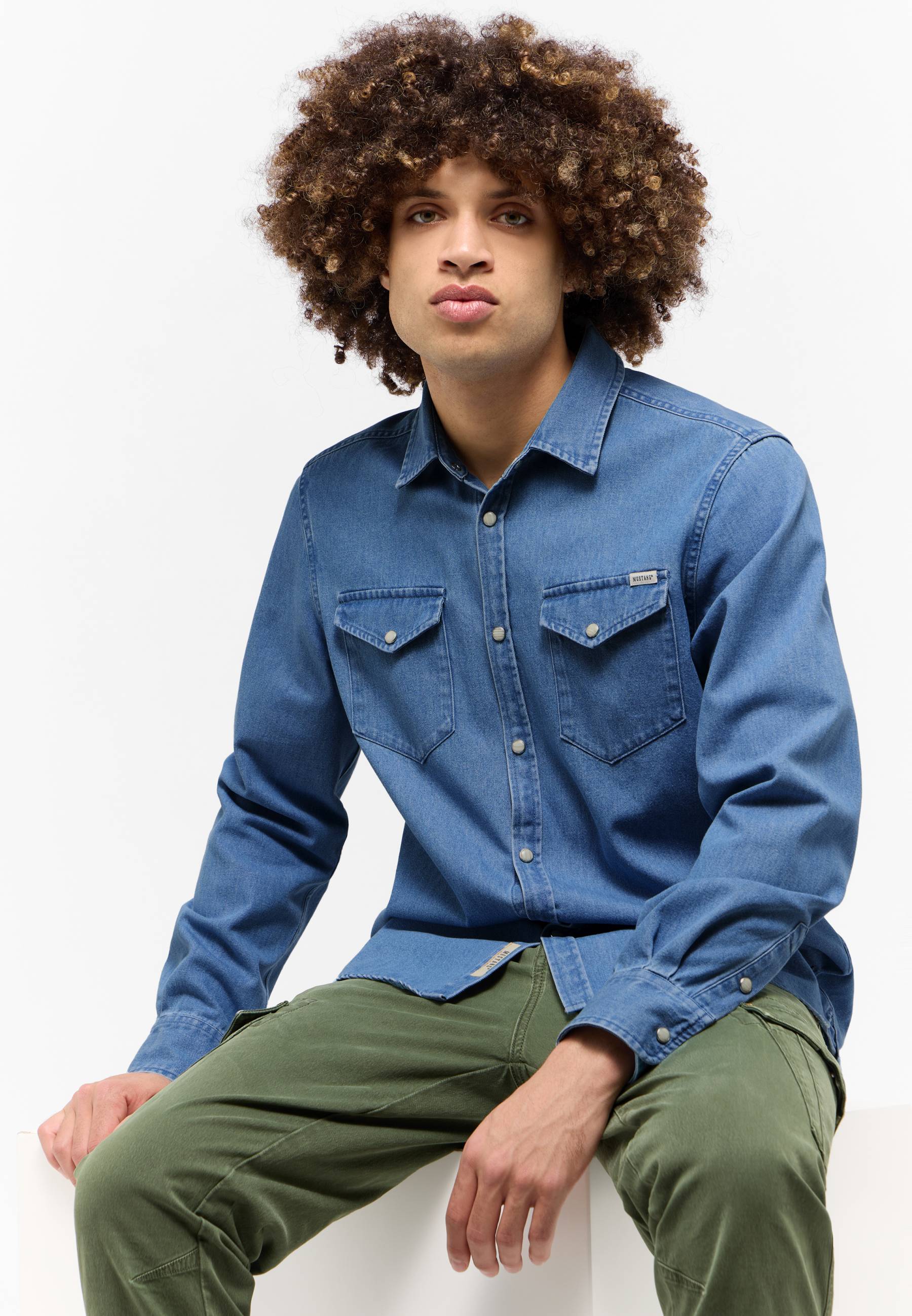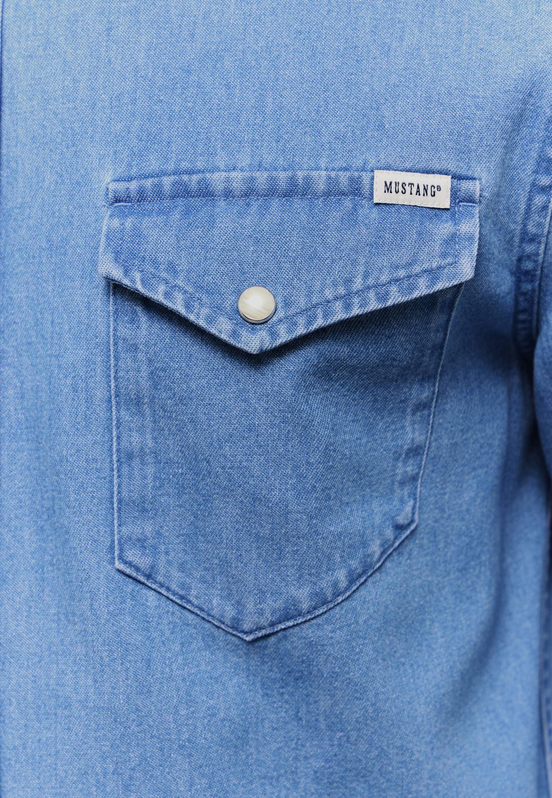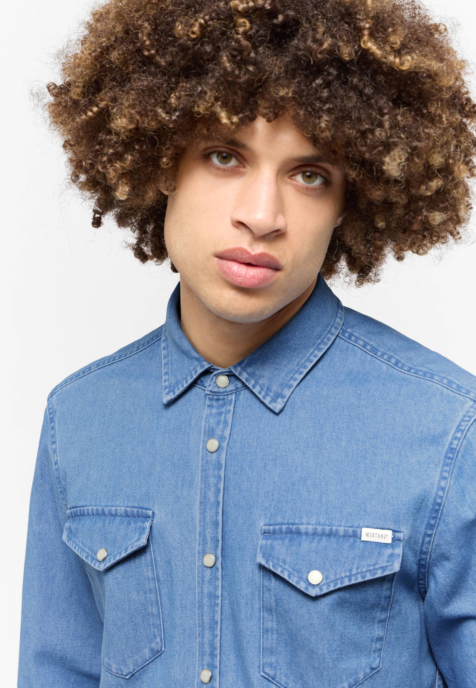 Dieses Jeanshemd von Mustang ist eine lässige Ergänzung für deine Outfits. Es verkörpert Lässigkeit pur und bietet dank hochwertiger Baumwolle exzellenten Tragekomfort. Aufgesetzte Brusttaschen und perlmuttfarbene Druckknöpfe verleihen dem Hemd einen zeitgemäßen Look. Mit einer Slim-fit-Jeans und Sneakern kommt es besonders gut zur Geltung.