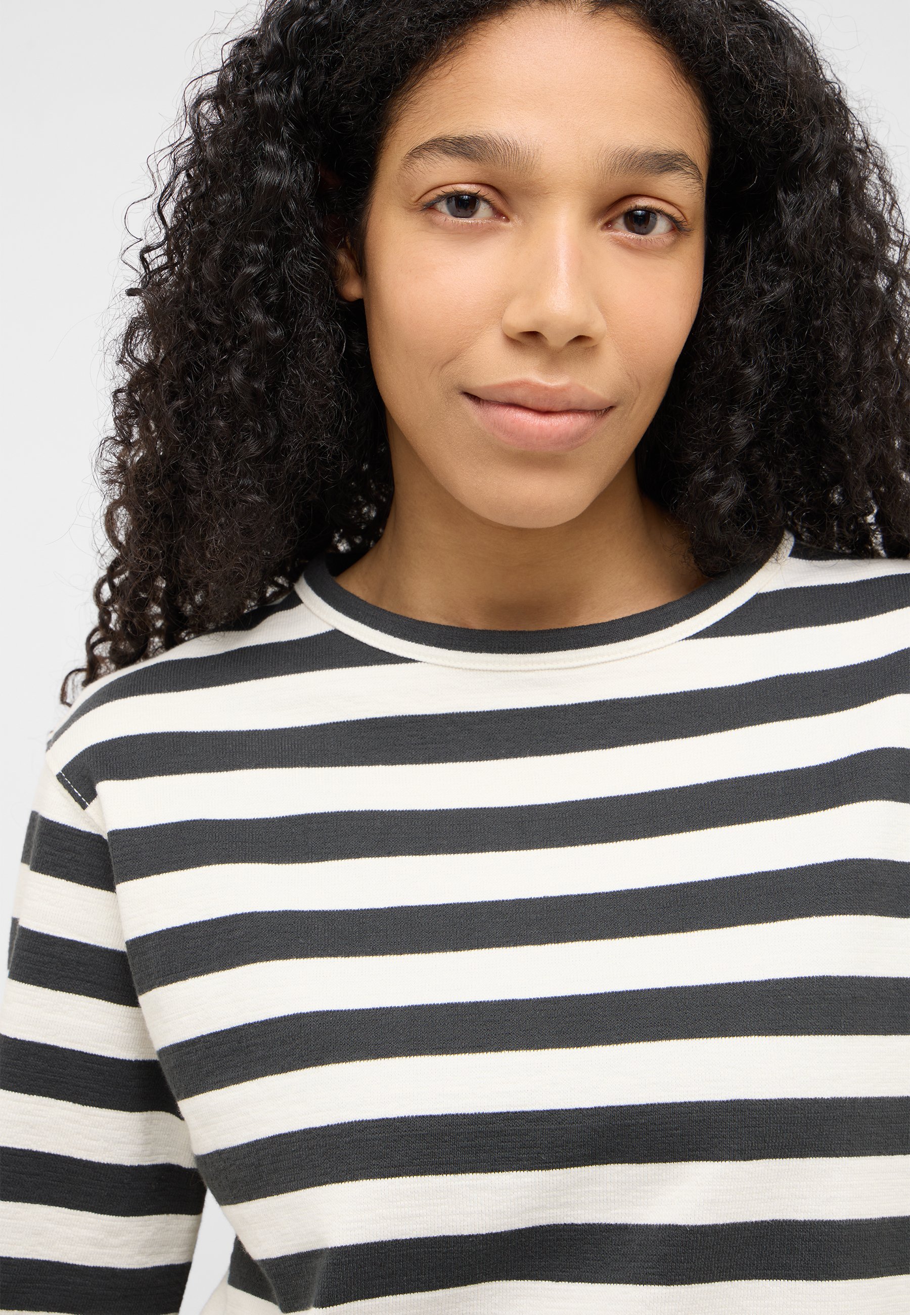 Dieser Sweater von Mustang setzt auf ein klassisches Streifenmuster und einen lockeren Schnitt. Gefertigt aus softer, atmungsaktiver Baumwolle bietet er exzellente Trageeigenschaften. Der klassische Rundhalsausschnitt und weite Ärmel unterstreichen den lässigen Look und machen das Shirt zu einem Basic mit Wohlfühlgarantie.