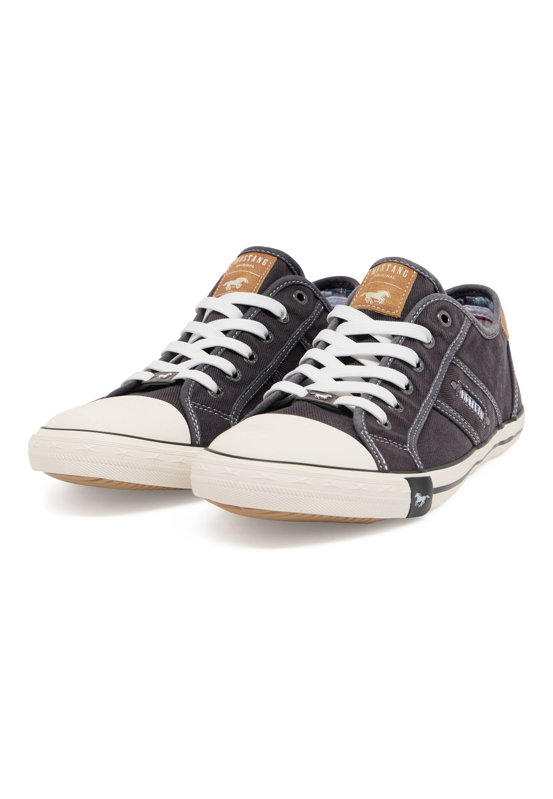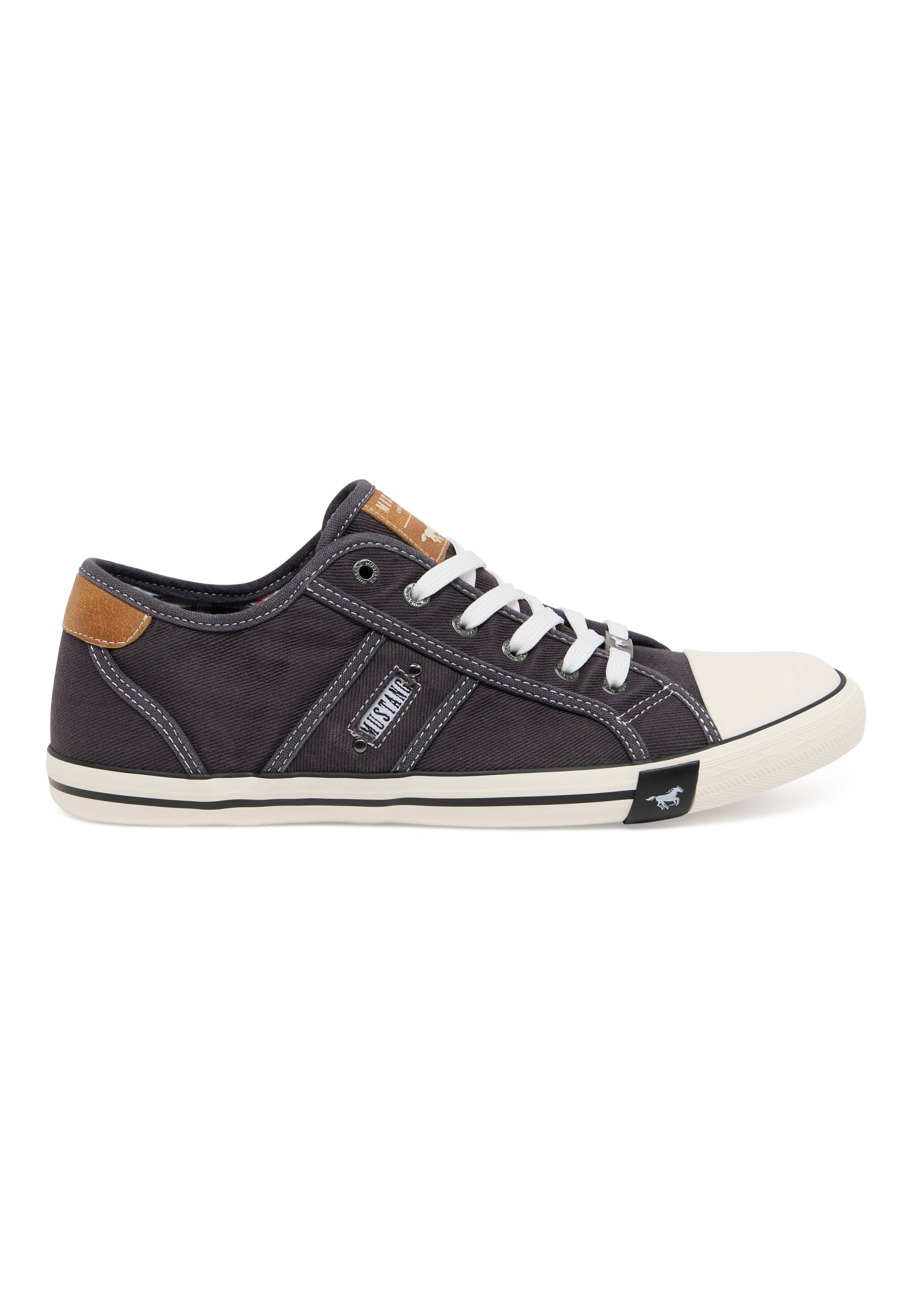 Komfort und Design, bei diesen Sneakers von Mustang wurde an alles gedacht. Das Obermaterial aus Textil und Lederimitat sowie diverse Label-Applikationen verleihen dem Modell einen modischen Look. Im Inneren sorgt eine softe Textilausstattung für einen angenehmen Tragekomfort. Dank der Ösenschnürung bietet der Schuh einen optimalen Sitz. Der Allrounder passt sowohl zum Casual-Outfit mit Shirt und Jeans oder zum Business-Look mit Rock und Bluse.