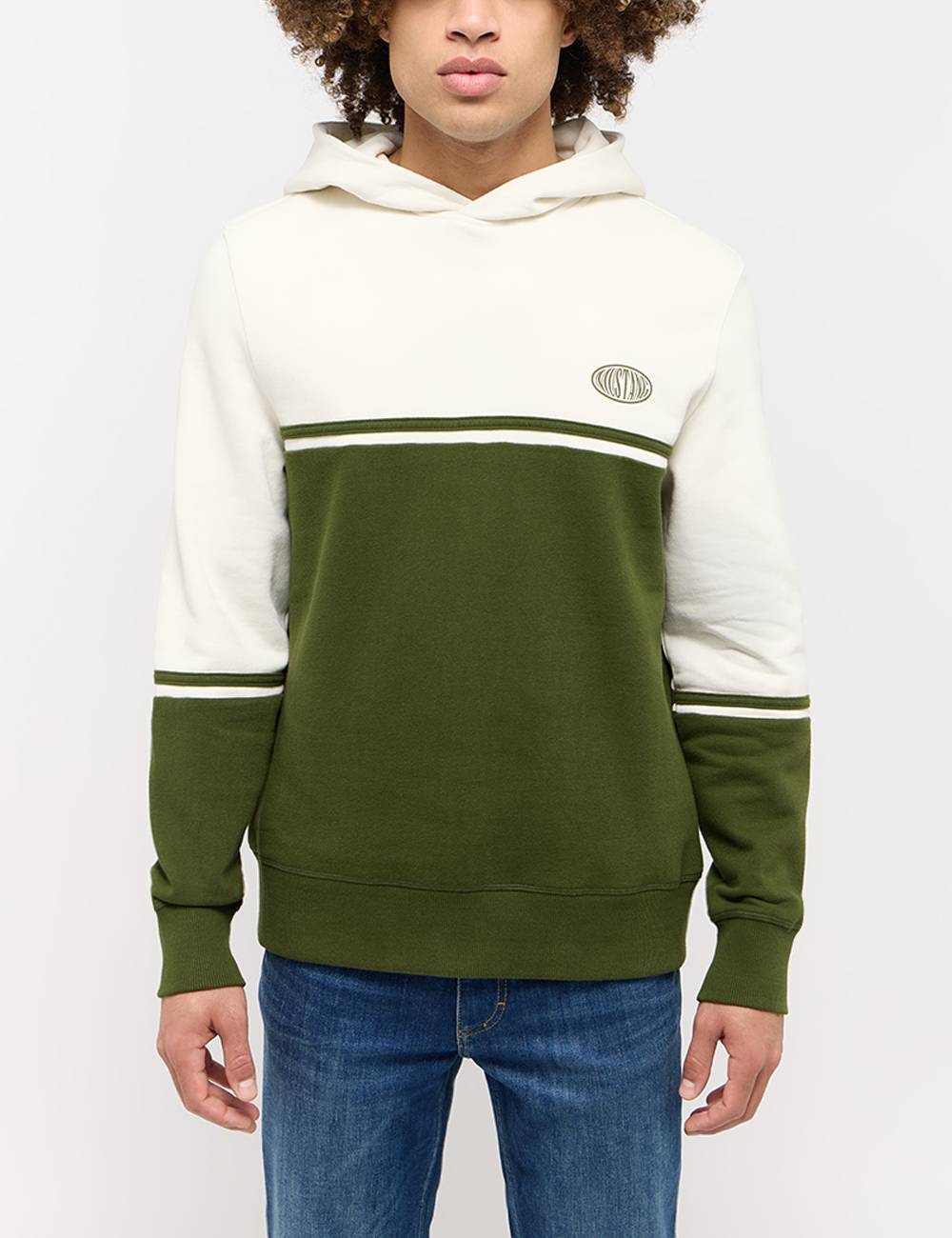 Dieser Hoodie von Mustang vereint sportiven Charme mit einem modernen Design. Der zweifarbige Look verleiht ihm eine dynamische Optik. Hergestellt aus weicher Baumwolle bietet das Modell ein angenehmes Tragegefühl. Die Kapuze und gerippte Bündchen sorgen für zusätzlichen Komfort. Unser Tipp: Jeans und Sneakern setzt du den Sweater besonders gut in Szene.